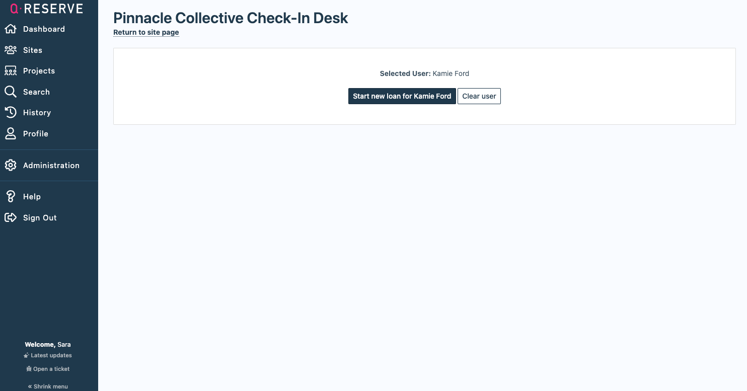 You can also begin the check-out process by scanning the item that is being borrowed (or manually search the item's name) and choose who is borrowing the item. Once the checkout process has begun you can scan more items to add to the reservation.