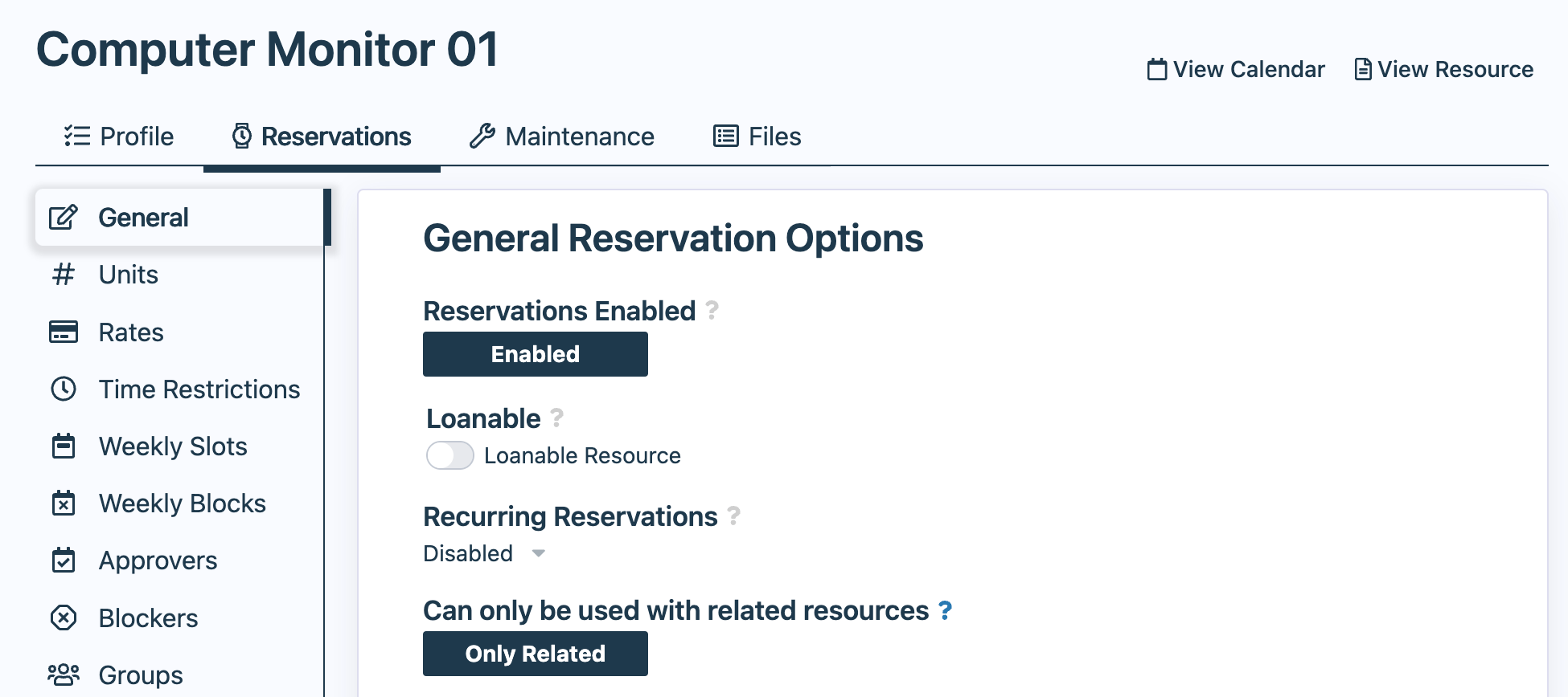 Now, in the user view, on the Computer Monitor 01 resource page, Desk 01 appears as a related resource and the same will happen when on the Desk 01 resource page.
